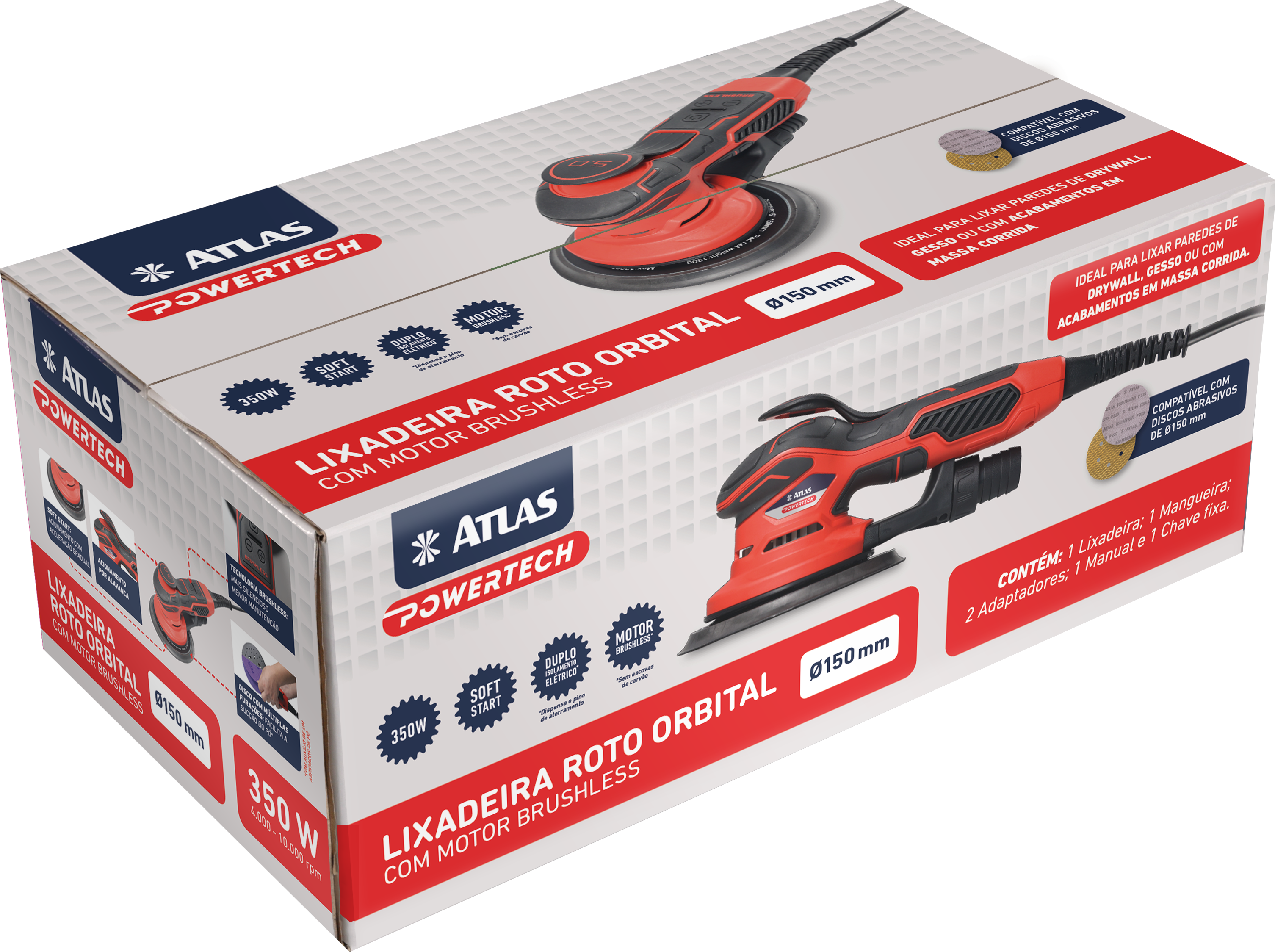 A lixadeira é projetada para lixar paredes que são feitos de drywall, gesso ou com acabamentos em massa corrida. Fornece um acabamento superior, é mais rápida do que os métodos de acabamento convencionais, tanto para construção como para reformas.