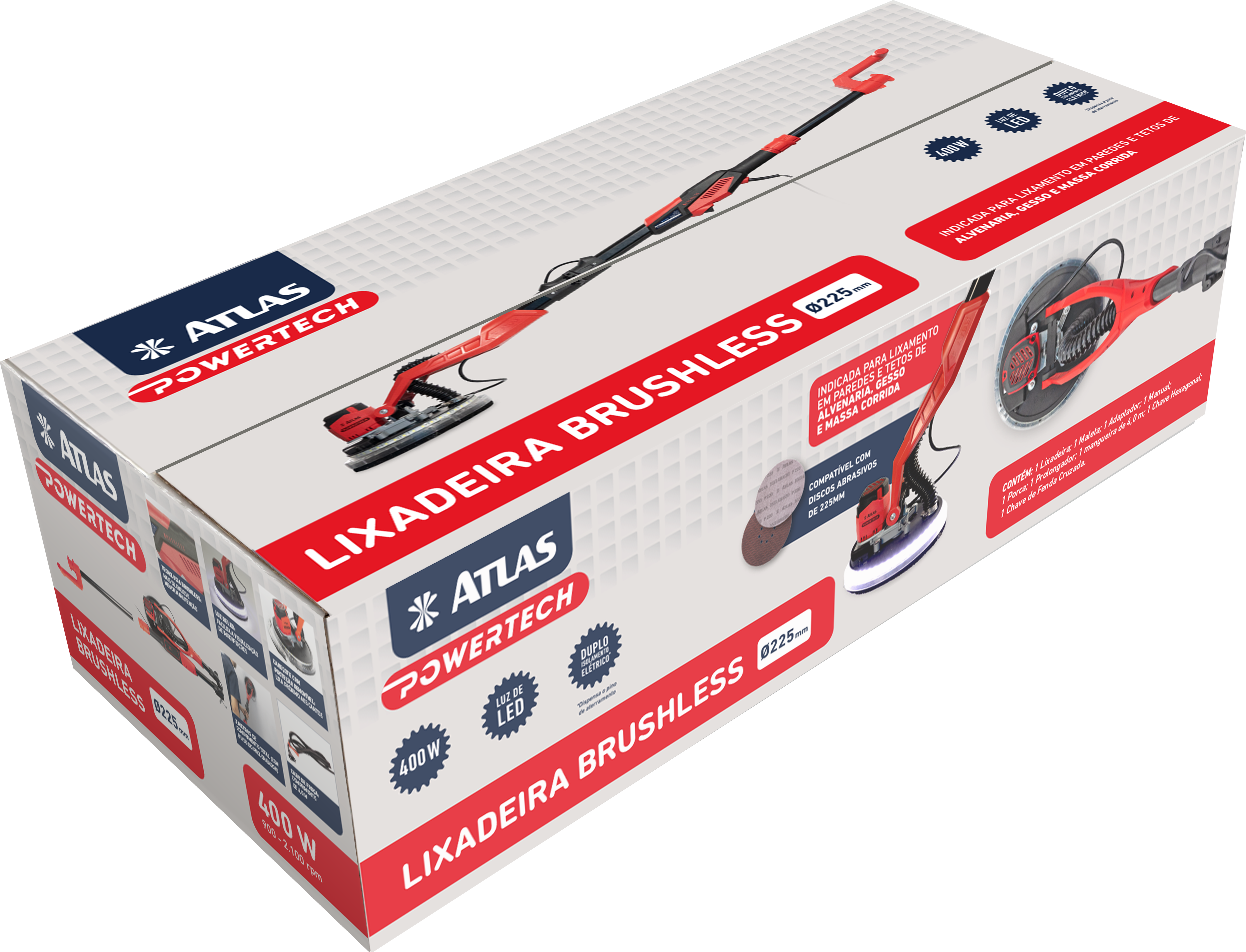 A lixadeira é projetada para lixar paredes e tetos que são feitos de drywall, gesso ou com acabamentos em massa corrida. Fornece um acabamento superior, é mais rápida do que os métodos de acabamento convencionais, tanto para construção como para reformas.