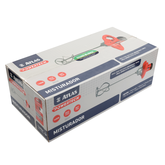 O Misturador elétrico é indicado para dissolver, agitar ou homogeneizar argamassa, tinta, gesso, cola, entre outros. É indicado para misturar, dissolver, agitar ou homogeneizar. Conta também com seletor eletrônico de 7 diferentes velocidades para cada rotação desejada e com tecnologia soft start de arranque suave, possibilitando partidas leves que evitam os respingos durante o uso do equipamento.