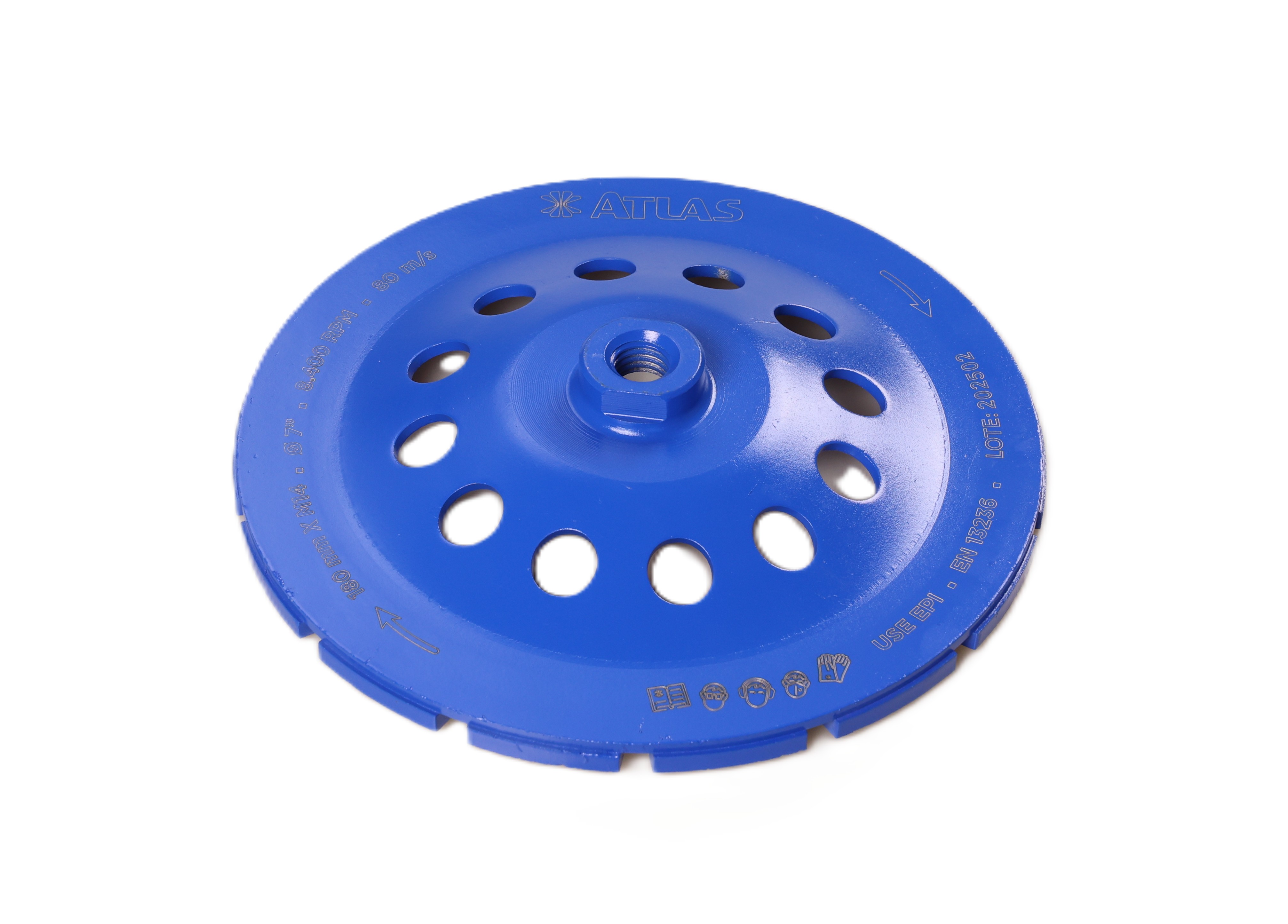 It is designed for use with 180mm (7”) angle grinders. Suitable for grinding concrete, masonry, marble, granite, and decorative stones.