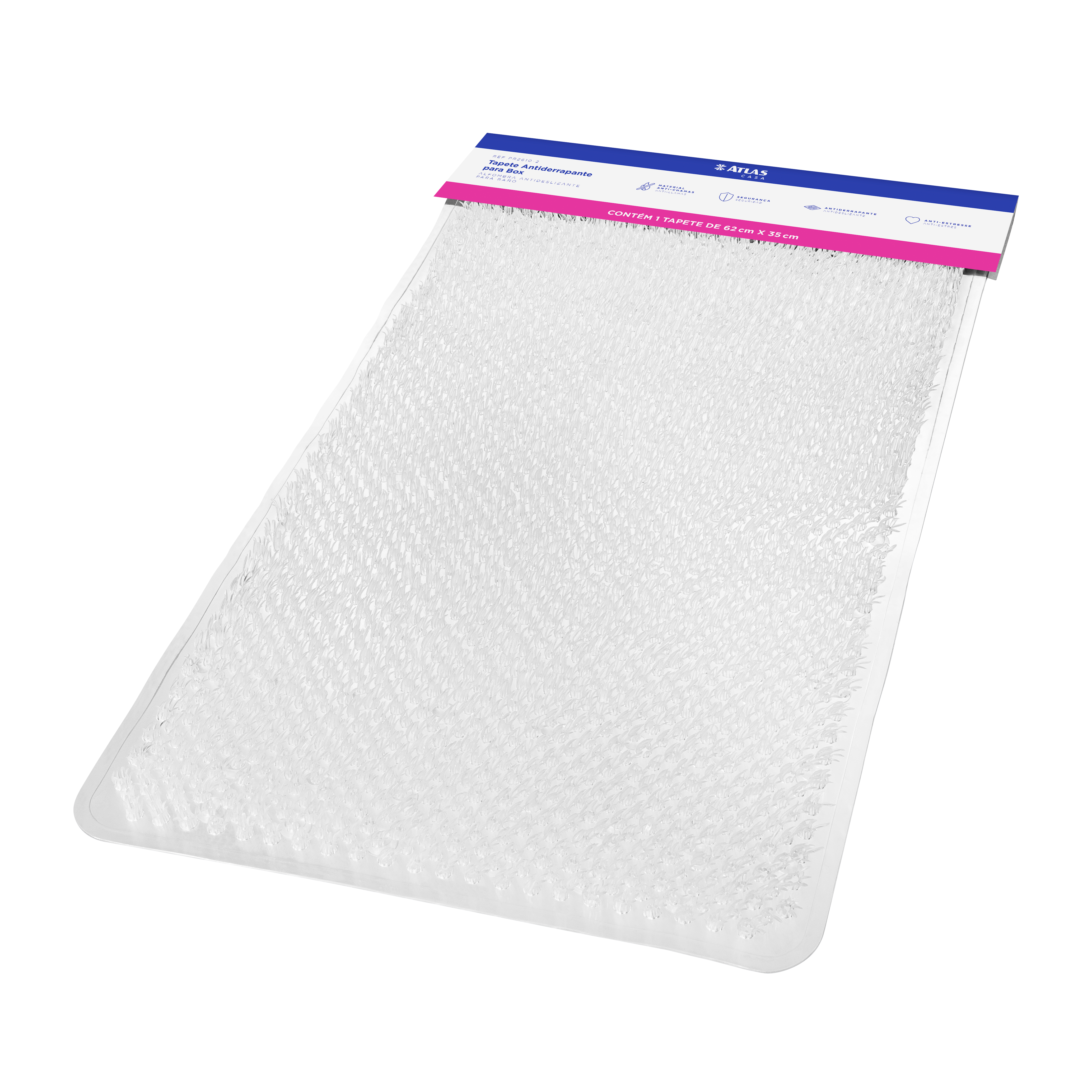 Tapete com Sistema antiderrapante de fixação por ventosa. Vazado para não acumular água. Garante segurança e bem-estar, protegendo contra o frio. Antistress: textura massageia os pés garantindo um banho mais relaxante. Decora e deixa ambiente mais aconchegante.