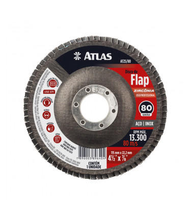O disco flap de zircônia de 115 mm é um tipo de produto abrasivo, também conhecido como disco de lixa, muito utilizado em operações de acabamento de peças em geral. A função do disco flap é o desbaste e acabamento de peças, sendo utilizado para a remoção de pontos de solda, tinta velha, ferrugem e outros detritos da superfície. Devido a sua capacidade de desbaste e acabamento em uma única operação, o disco flap elimina a troca de discos. É utilizado em conjunto com lixadeiras e esmerilhadeiras.