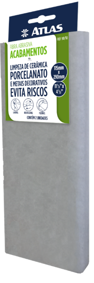 A fibra abrasiva acabamentos foi desenvolvida para limpeza de cerâmicas, porcelanatos e metais decorativos delicados, pois evita deixar riscos na superfície. Vantagens: alcança cantos difíceis, permite utilização em superfícies curvas, não satura e melhor acabamento superficial.
