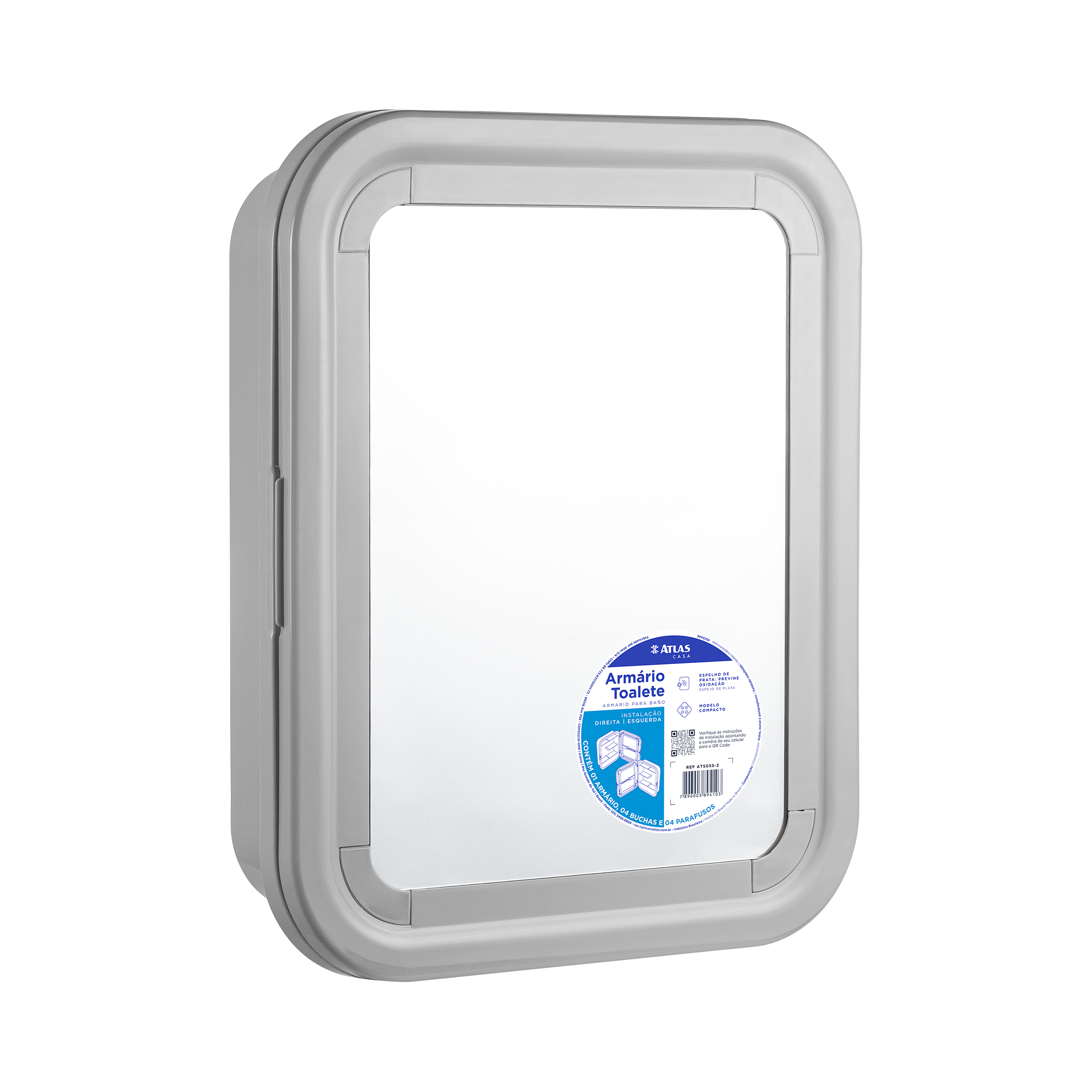 Armário pequeno com a porta e o corpo confeccionado em polipropileno copolímero. Espelho de prata que garante resistência e durabilidade a umidade. Indicado para banheiro e vestiários, desenho moderno e discreto. Pode ser instalado com porta para direita ou esquerda. Limpar com pano levemente umedecido com água e pano seco.