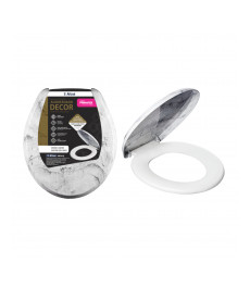 Assento sanitário almofadado. Tampa com efeito mármore envolvente com design luxo. Fácil instalação. Ação antibacteriana, maior higiene e proteção à saúde. Assento sanitário que se adapta às louças convencionais. Ideal para consumidores exigentes que procuram produto de alta qualidade, resistente, fácil de limpar e decorativo. Combina perfeitamente com ambientes marmorizados.