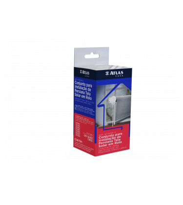Conjunto de instalação para persiana em rolo com tela solar. Composto por mecanismos de rolagem fixo e retrátil, suportes laterais, suporte para cordão (com cordão), buchas e parafusos. Feito com material durável e resistente.