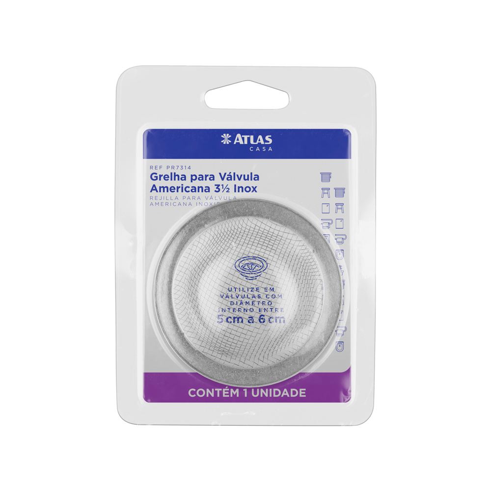 GRELHA PARA VALVULA AMERICANA 3 ½ COM TELA DE AÇO INOXIDÁVEL COM BORDA DE ALUMINIO. INSTALADO. EVITA QUE RESÍDUOS SÓLIDOS SEJAM LANÇADOS NA TUBULAÇÃO DE ESGOTO e O SEU ENTUPIMENTO. FÁCIL INSTALAÇÃO E LIMPEZA.