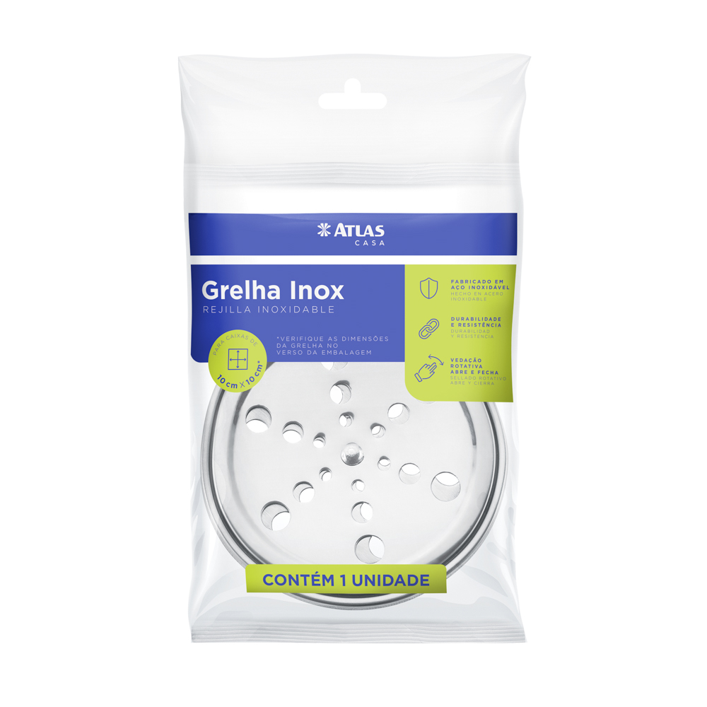 Grelhas com 15 x 15 cm. Fabricado em aço inox 430. Possui mecanismo abre e fecha que impede a entrada de insetos. Suporta até 120 Kg.