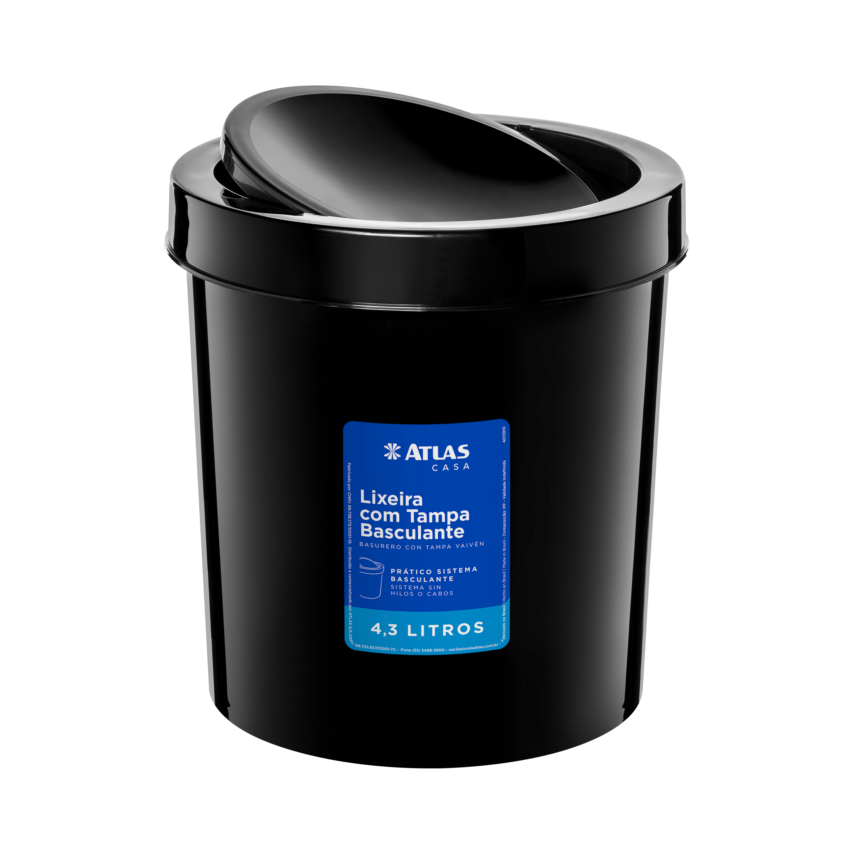 Lixeira redonda com Tampa basculante. Multiuso. Ideal para pequenos espaços. Cor para combinar com decoração do ambiente. Resistente, prática e funcional. Fácil de lavar. Capacidade: 4,3 litros.