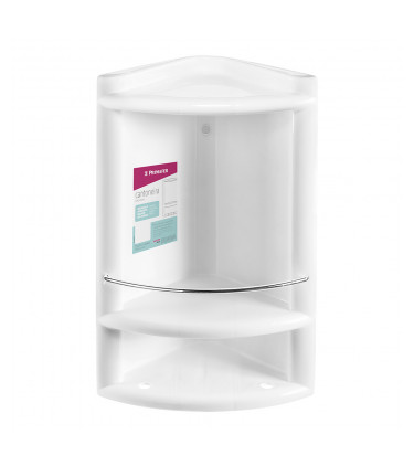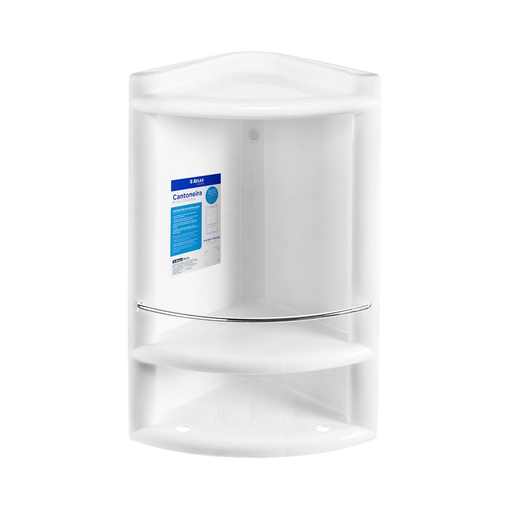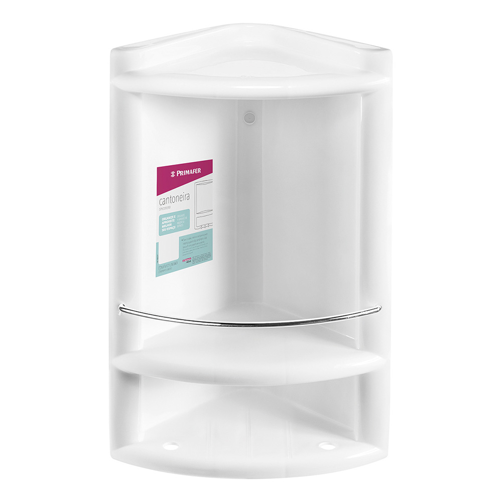 Cantoneira plástica alto brilho com acabamento em metal. Excelente espaço – uma das maiores do mercado. Acompanha parafuso e bucha para instalação. Ideal para banheiros, cozinhas e áreas de serviço. Organização, funcionalidade e segurança