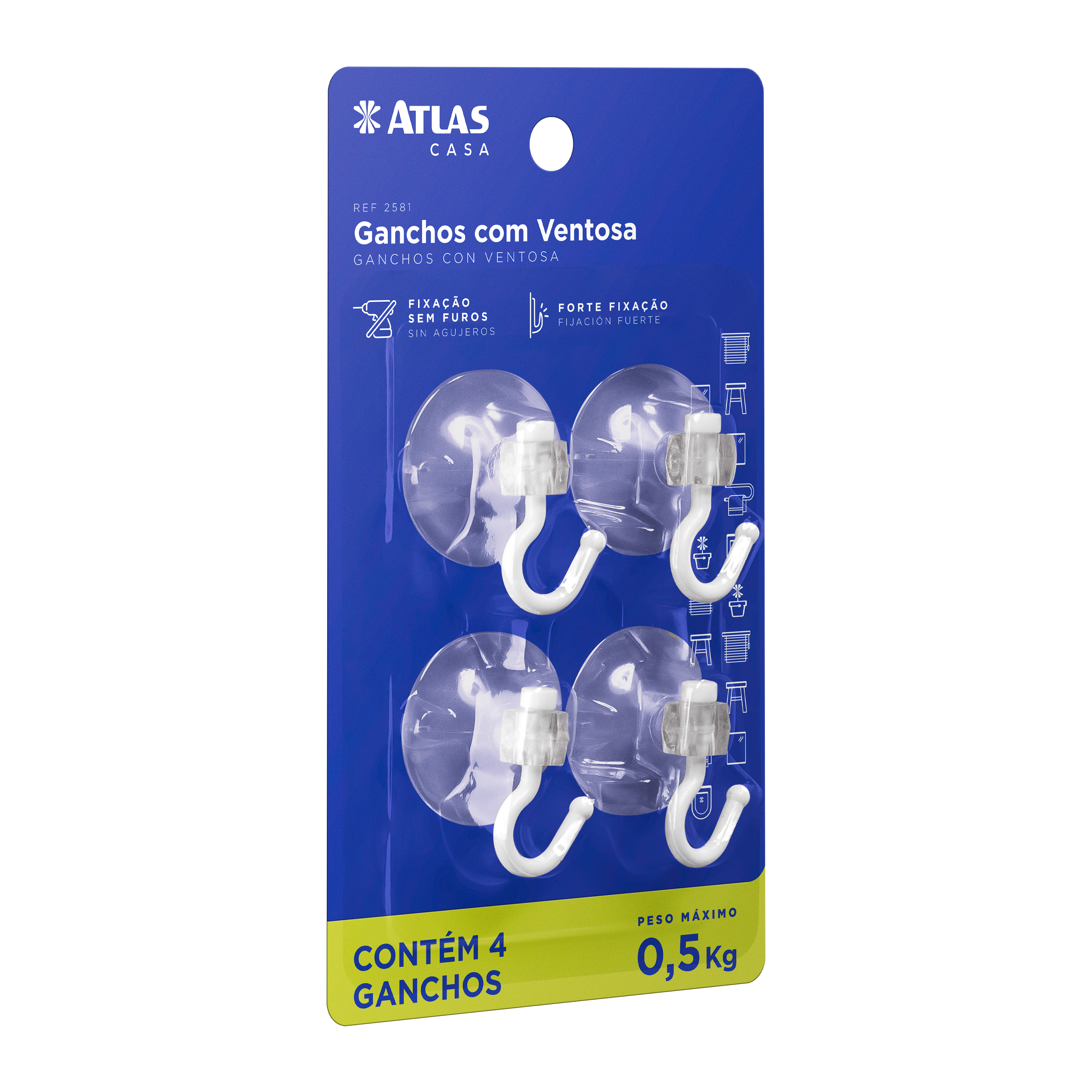 Gancho plástico com ventosa. Não danifica a parede. Não deixa resíduos. Versátil e resistente. Organiza e decora o ambiente. Capacidade máxima: 0,7 Kg. Organiza casacos, lenços, cachecóis, chapéus e decora o espaço. Indicado para suportar até 0,7 kg.