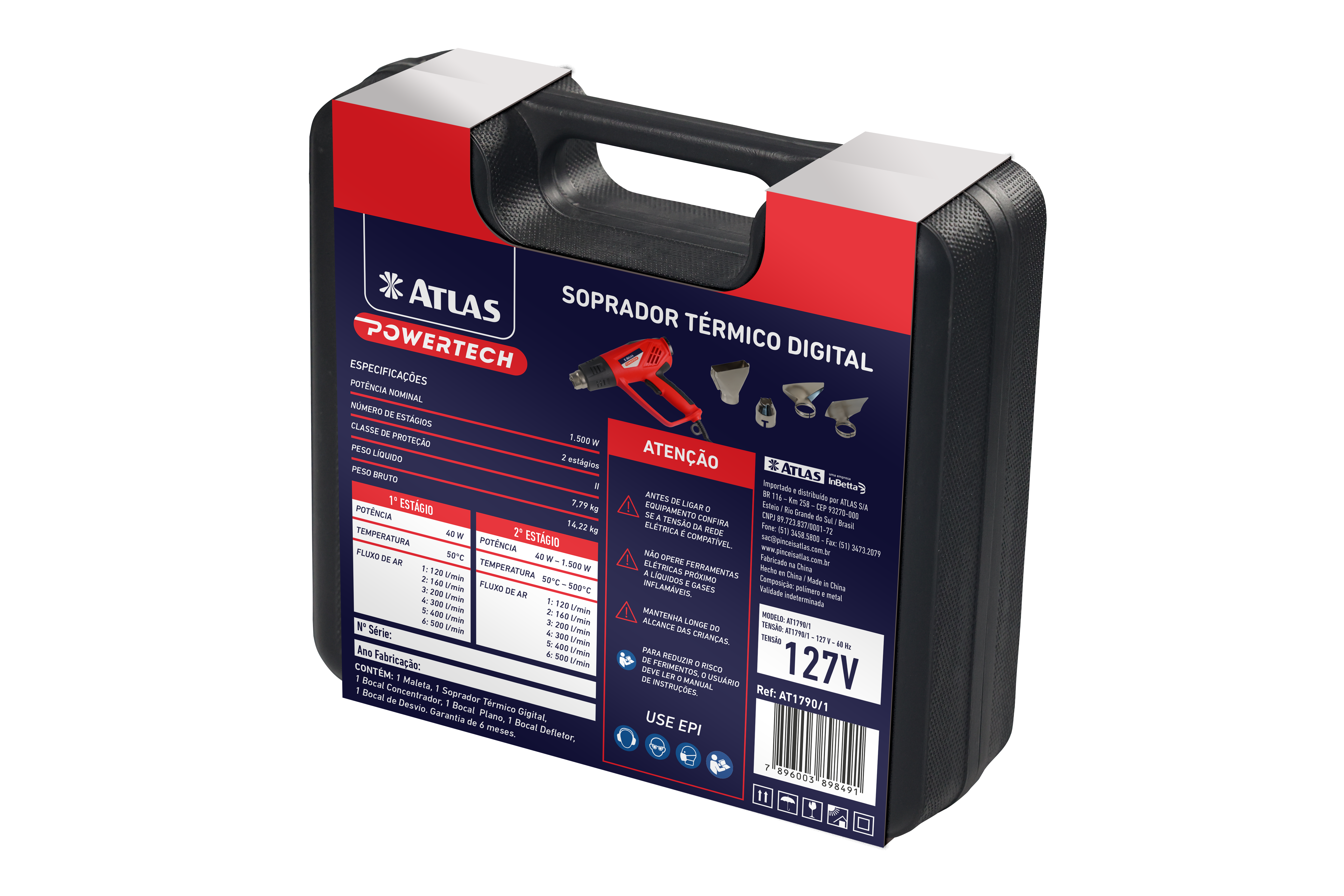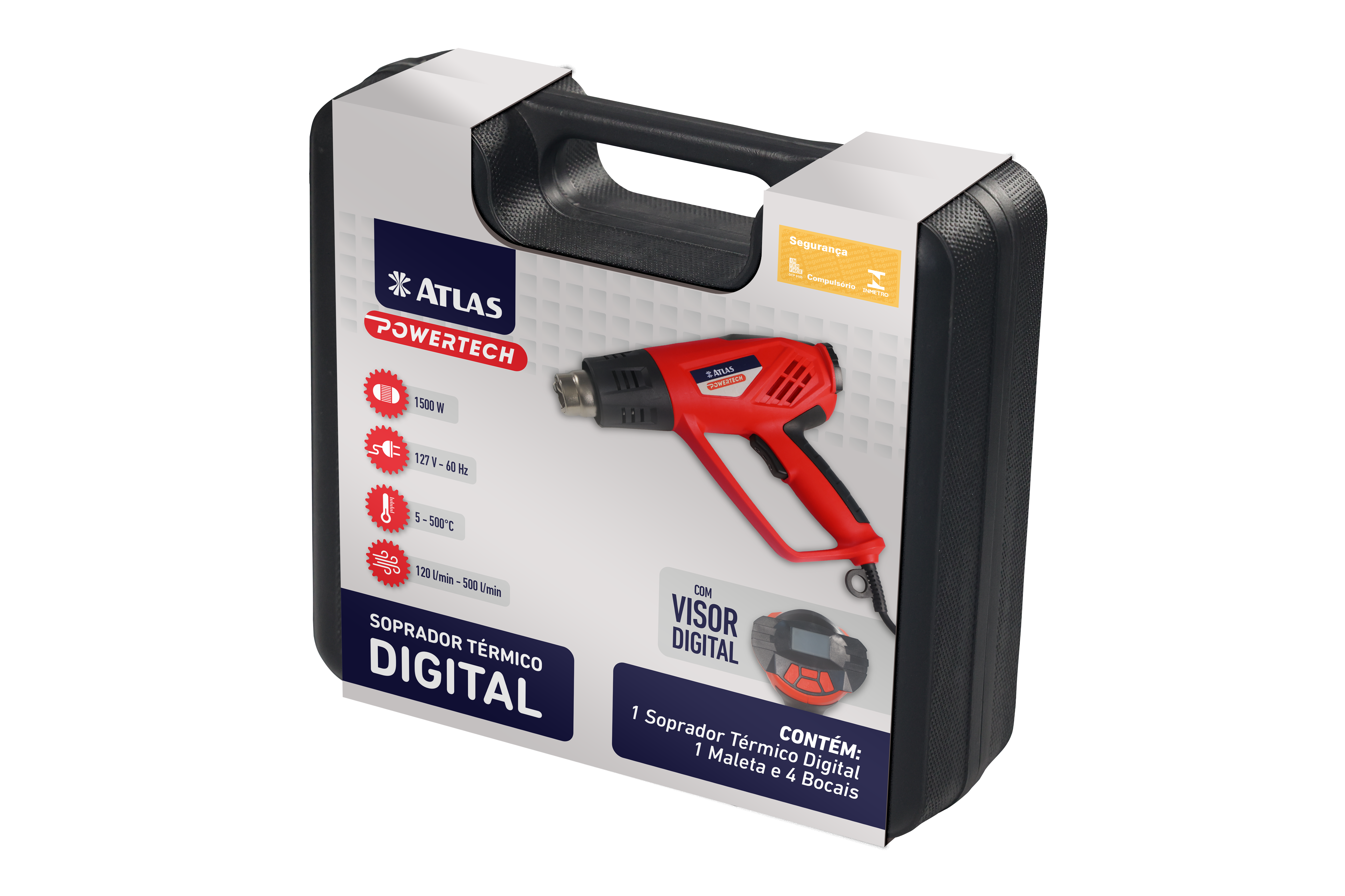 O Soprador Térmico Atlas AT1790 é indicado para remoção ou secagem de tintas, vernizes e cola. Pode ser utilizado também para descongelamento de tubos metálicos com água, aplicação de tubos termo retrátil, aplicação de películas protetivas em vidros, auxiliar na remoção de porcas e parafusos enferrujados, moldagem de materiais plásticos, moldagem e instalação de canos de PVC, entre outros.