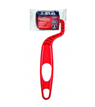 Rolo de poliéster com cabo plástico. Densidade 30 (kg/m³). Resistente a solventes. Indicado para superfícies lisas. Use com tintas esmalte, verniz, acrílica (pva). Produto resistente a solventes minerais, não utilizar com thinner.