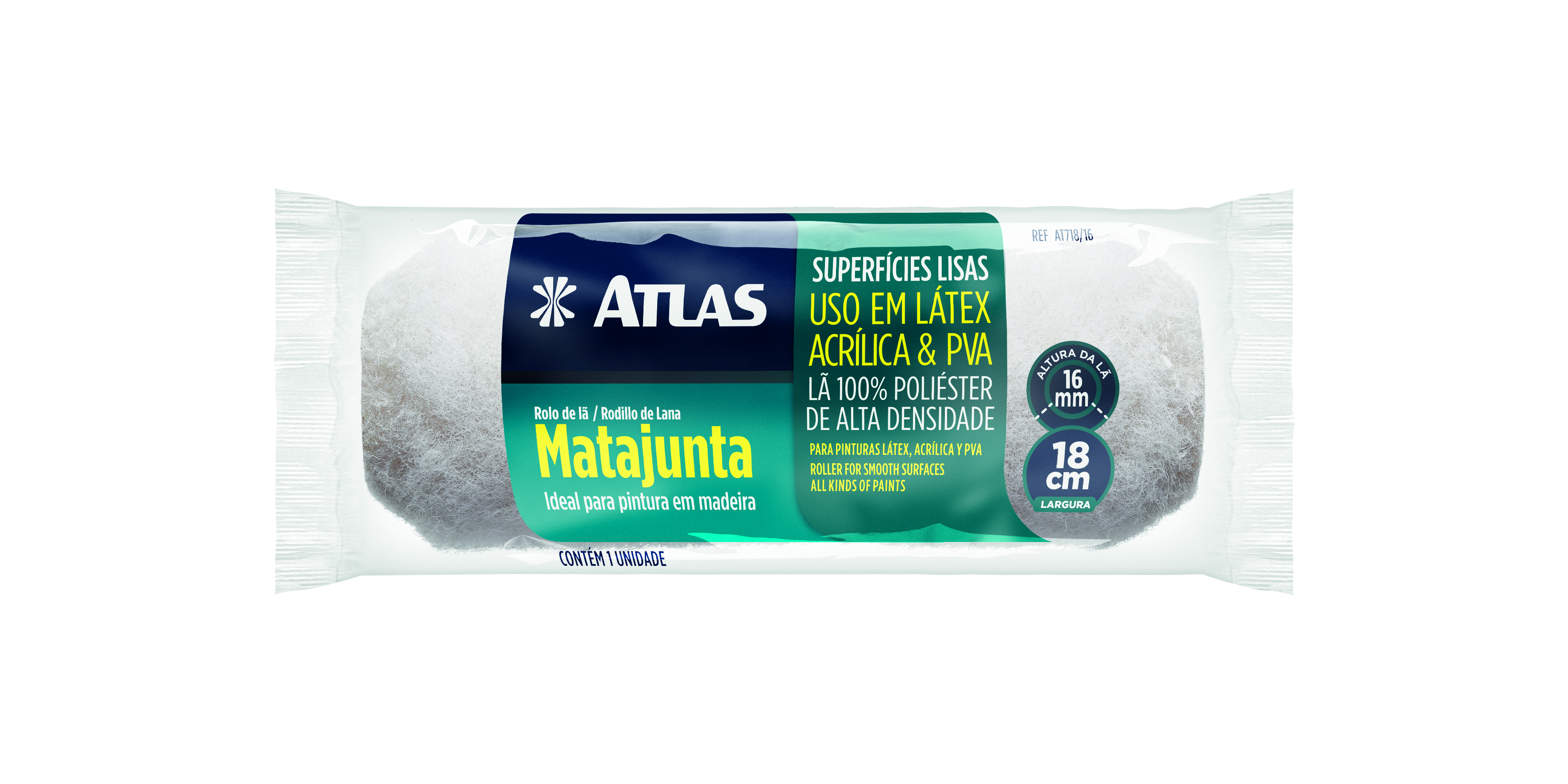 Rolo 18cm multiuso de lã sintética de poliéster. Ideal para pintura em superfícies lisas e semi rugosas. Use com tintas acrílica, látex (pva) e esmalte.