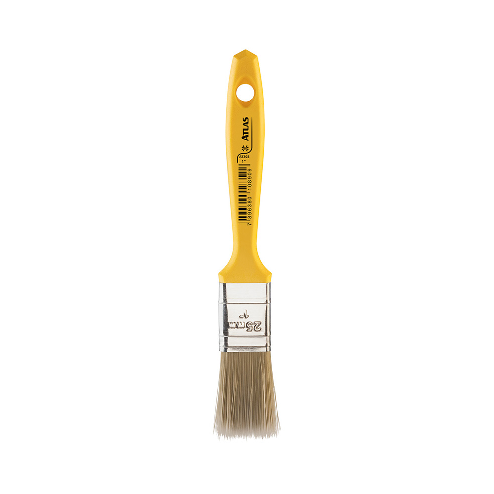 Trincha média com monofilamento sintético. Trincha com maior carregamento de tinta, melhor acabamento, maior durabilidade e recortes mais precisos.